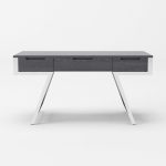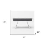 Bring this classic style 63″ gray manufactured wood rectangular writing desk with three drawers to your living room, home office or bedroom as a practical and fashionable accent. With a classic shape and style, this well made rectangular desk is a stylish way to keep your office space looking good. Multiple drawers give this desk plenty of hidden storage for your office essentials. Built to last, this sturdy desk is designed for comfort and efficiency for years to come. 30″ H x 63″ W x 28″ D