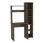 The Aramis Desk is perfect for anyone who wants a modern desk with plenty of storage. The desk provides enough work surface (17,2”D X 38,7”W) for a large monitor and keyboard, and the hutch offers space for books or decorations. The attached cabinet gives you five open spaces (11,12”W X 13,3”H) for books, binders, folders, or a CPU tower. The Aramis Desk is made of high-quality materials and is built to last. Designed with elegant Light Gray, Smokey Oak, White, Black Wengue, Light Oak, and Dark Brown manufactured wood finish.