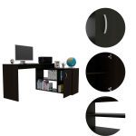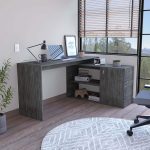 The Boston Home Office Desk provides a stunning good look to your home office room, this “L” shaped computer corner Desk offers a spacious work surface (45,86”D X 59,64”W) that is great for doing paperwork, or for using with a computer. The secondary surface offers additional workspace, two open shelves (27,71”W X 11,81”H) and a large storage cabinet that can be used for other important items. Designed with elegant black wengue, light oak, smoky oak and white manufactured wood finish.