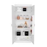 The Chad Pantry Double Door Cabinet is a kitchen organization station that frees up valuable counter and cabinet space, holding your microwave, coffee maker, and other small appliances. It features this cabinet features 5 spacious shelves to store all your items, is easy to assemble simply, without any complications, elegant and modern design that combines perfectly with any style you have in your space, this product is made of high-quality Engineered wood (CARB II and TSCA composite wood certifications). Designed with an elegant White manufactured wood finish.