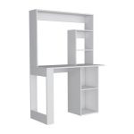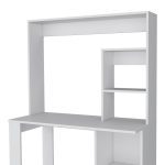You are looking for a desk that combines style and functionality? Look no further than the Desk Ryndon. This compact Desk boasts a sleek and modern design, with an ample work surface (38,8 W X 17,7 D) that is perfect for your computer or tasks. The Desk also includes a hutch and five spacious shelves, providing plenty of space to store your office essentials and display your favorite decor items. With ample legroom space, this Desk is stylish and comfortable for extended periods. Designed with an elegant white manufactured wood finish.