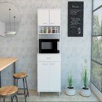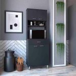 The Helis 60 Pantry Double Door Cabinet is a kitchen organization station that frees up valuable counter and cabinet space, holding your microwave, coffee maker, and other small appliances. It features a bottom cabinet for bigger items such as pots and pans, a top spice rack and cabinet, and a spacious top surface to place a big microwave or prep meals, top. Designed with elegant Black Wengue, Light Grey, White, Light Oak, Smokey Oak manufactured Wood finish.