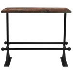 The bar table and chairs are made of solid reclaimed wood that has been sourced from joists, floors and support beams from old buildings being demolished, and can consist of different types of wood like pine, teak, beech, oak, cedar, mango wood, acacia, etc. This means the reclaimed wood retains the characteristics of these different types of wood. Reclaimed wood is already aged, weathered and dried, so it doesn’t shrink or bend.